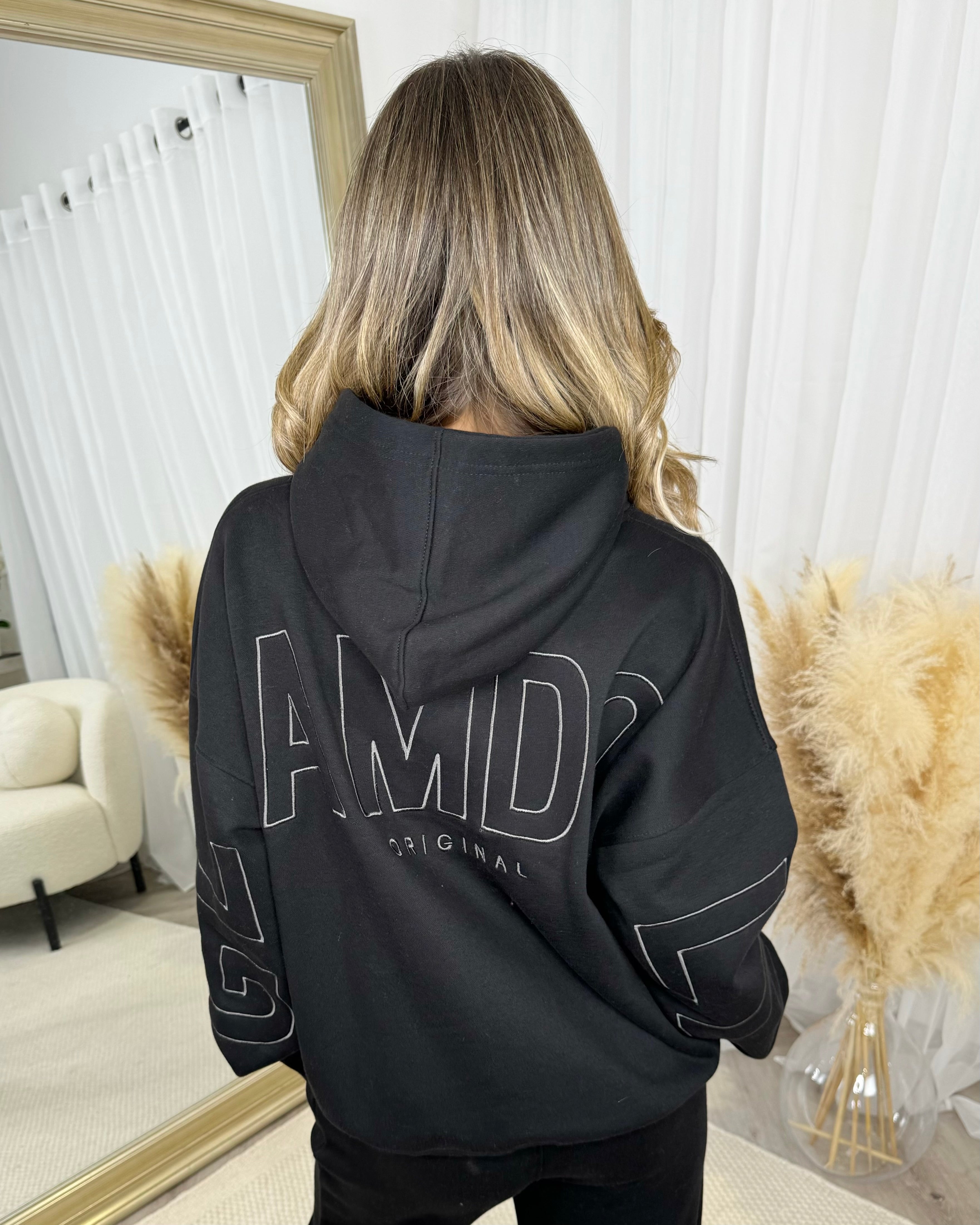 Clara 'GLAMDOLL' Embroidery Outline Detail Back Design Hoodie - Black