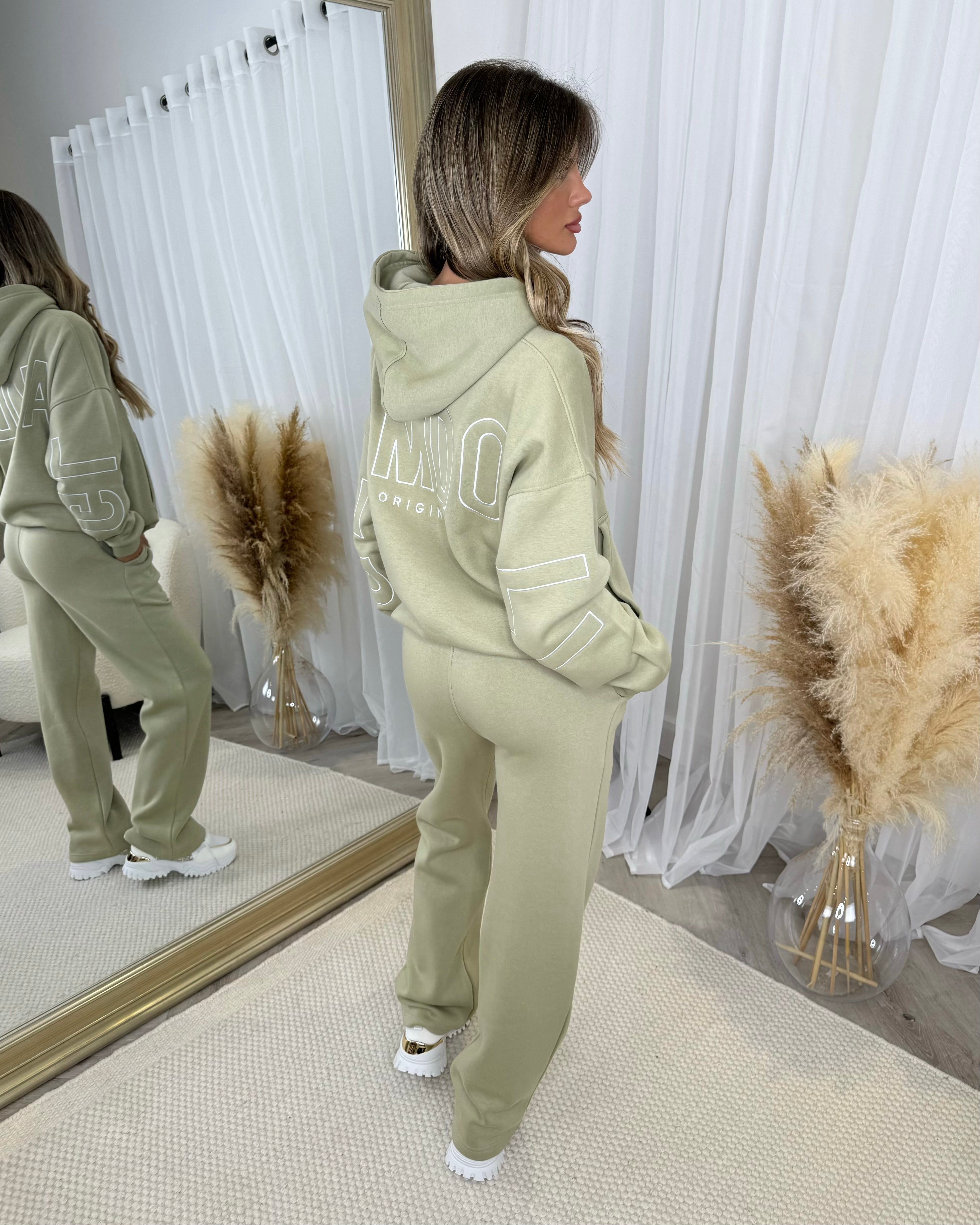 Clara 'GLAMDOLL' Embroidery Outline Detail Back Design Hoodie - Sage Green