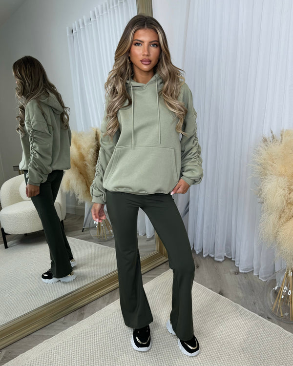 Deja High Waisted Flared Leg Gym Pants- Khaki