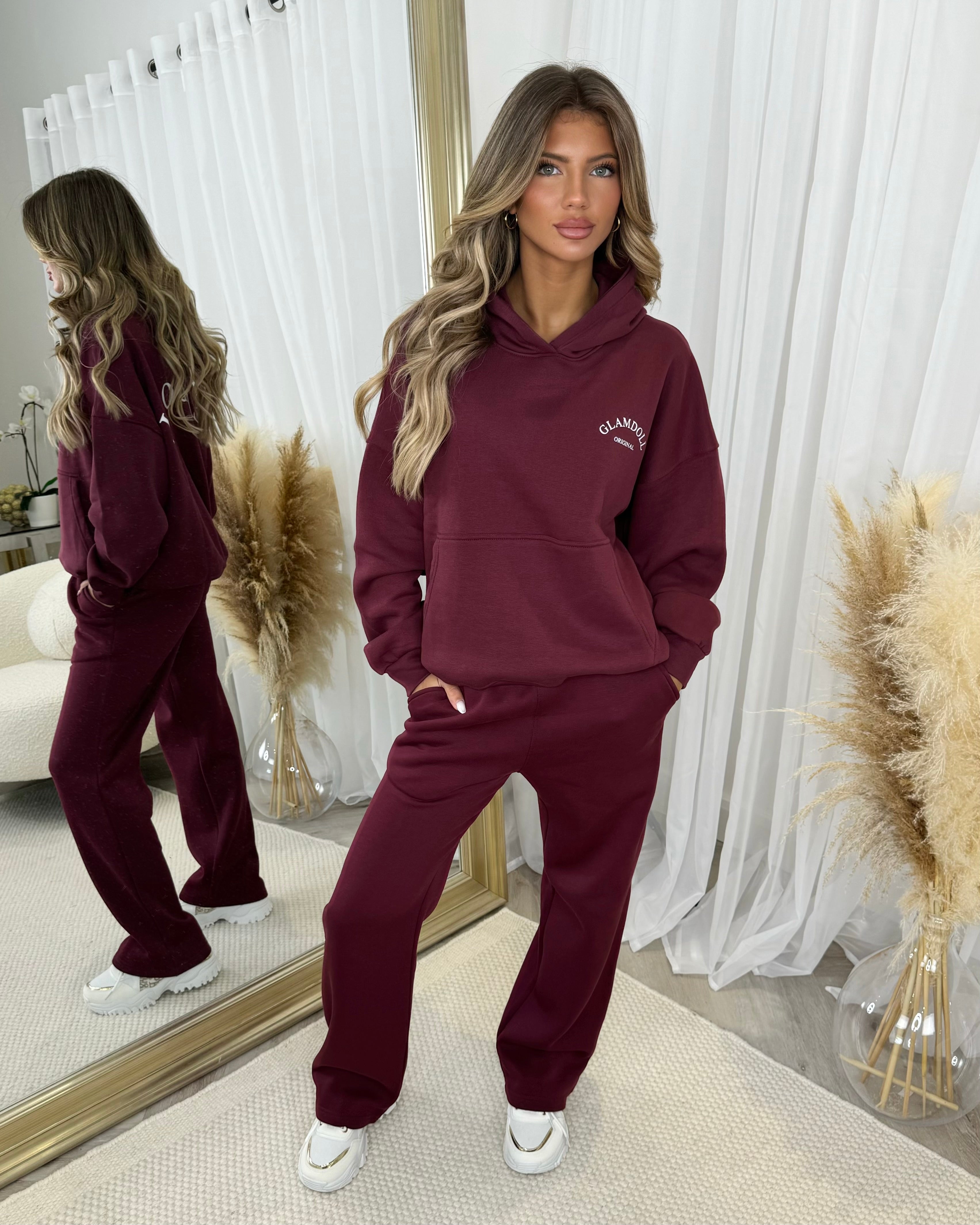 Lydia 'GLAMDOLL ORIGINAL' Front & Back Print Design Fleece Lined Hoodie - Burgundy