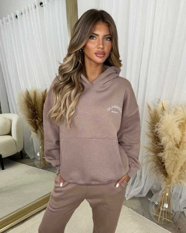 Lydia 'GLAMDOLL ORIGINAL' Front & Back Print Design Fleece Lined Hoodie - Mocha