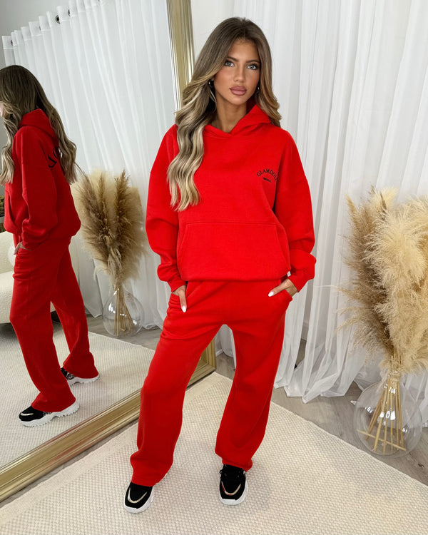 Lydia 'GLAMDOLL ORIGINAL' Front & Back Print Design Fleece Lined Hoodie - Red