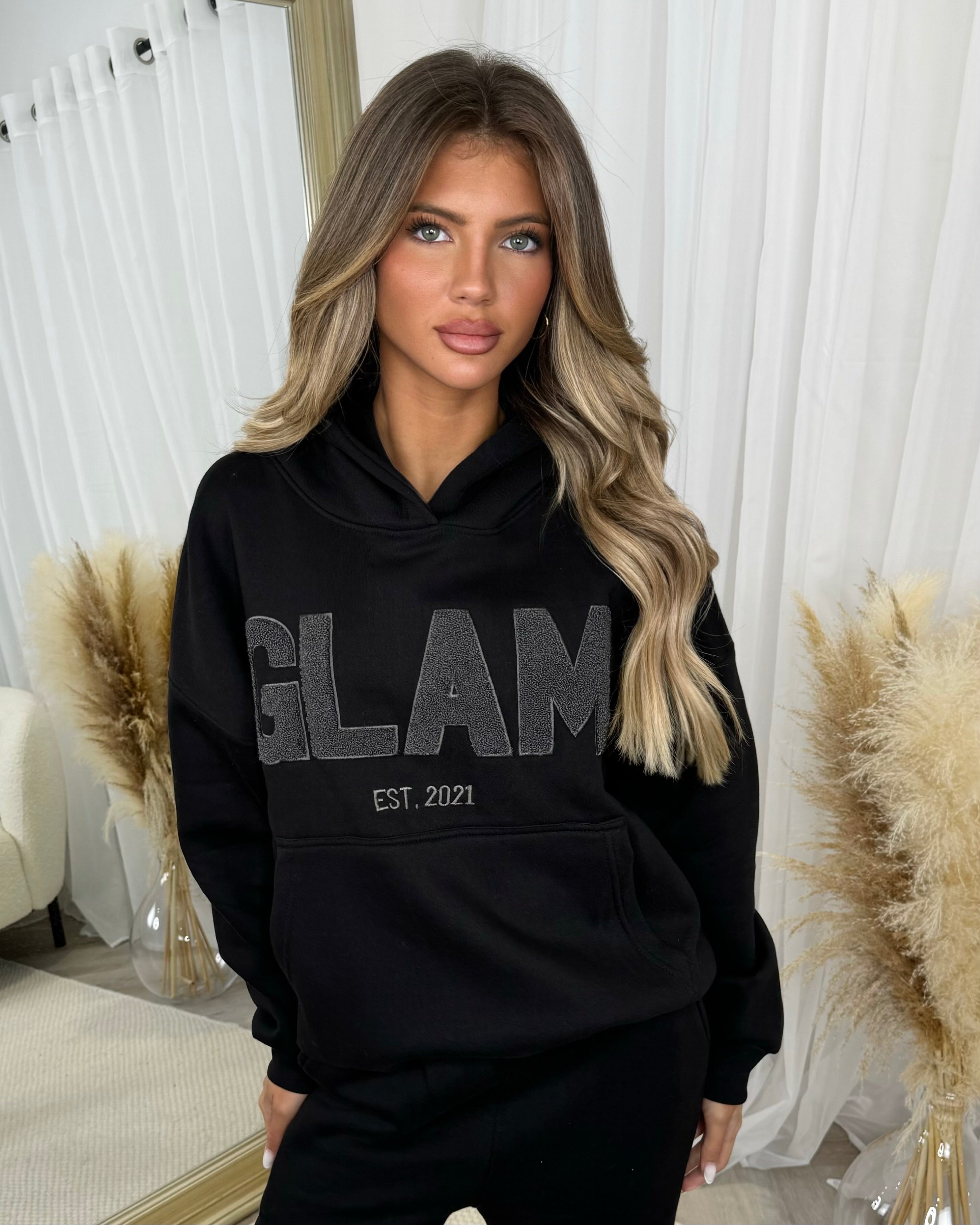 Millie 'GLAM' BOLD EMOBROIDERY Front Logo Print Hoodie - Black