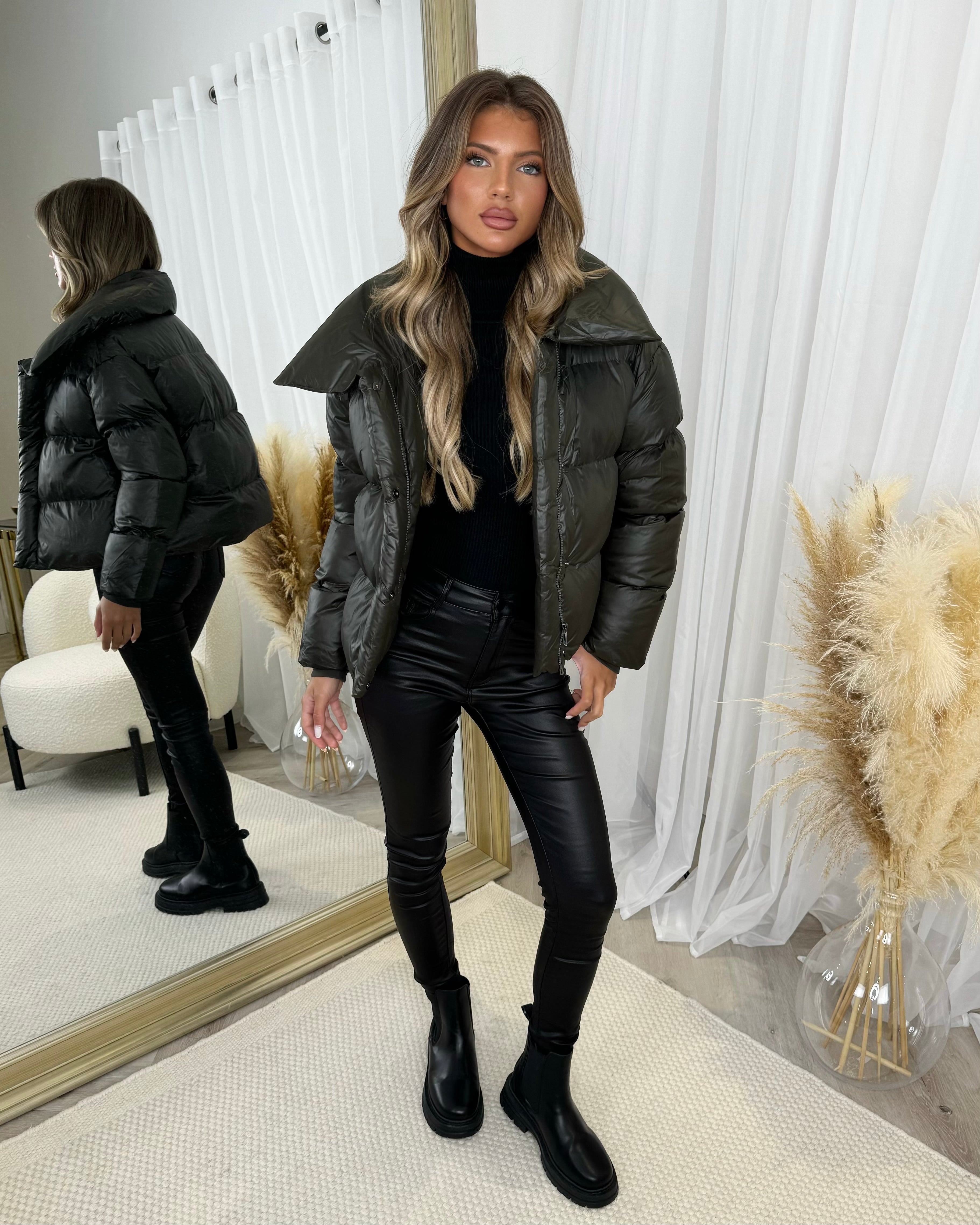 Rita Short Padded Bomber Jacket - Khaki