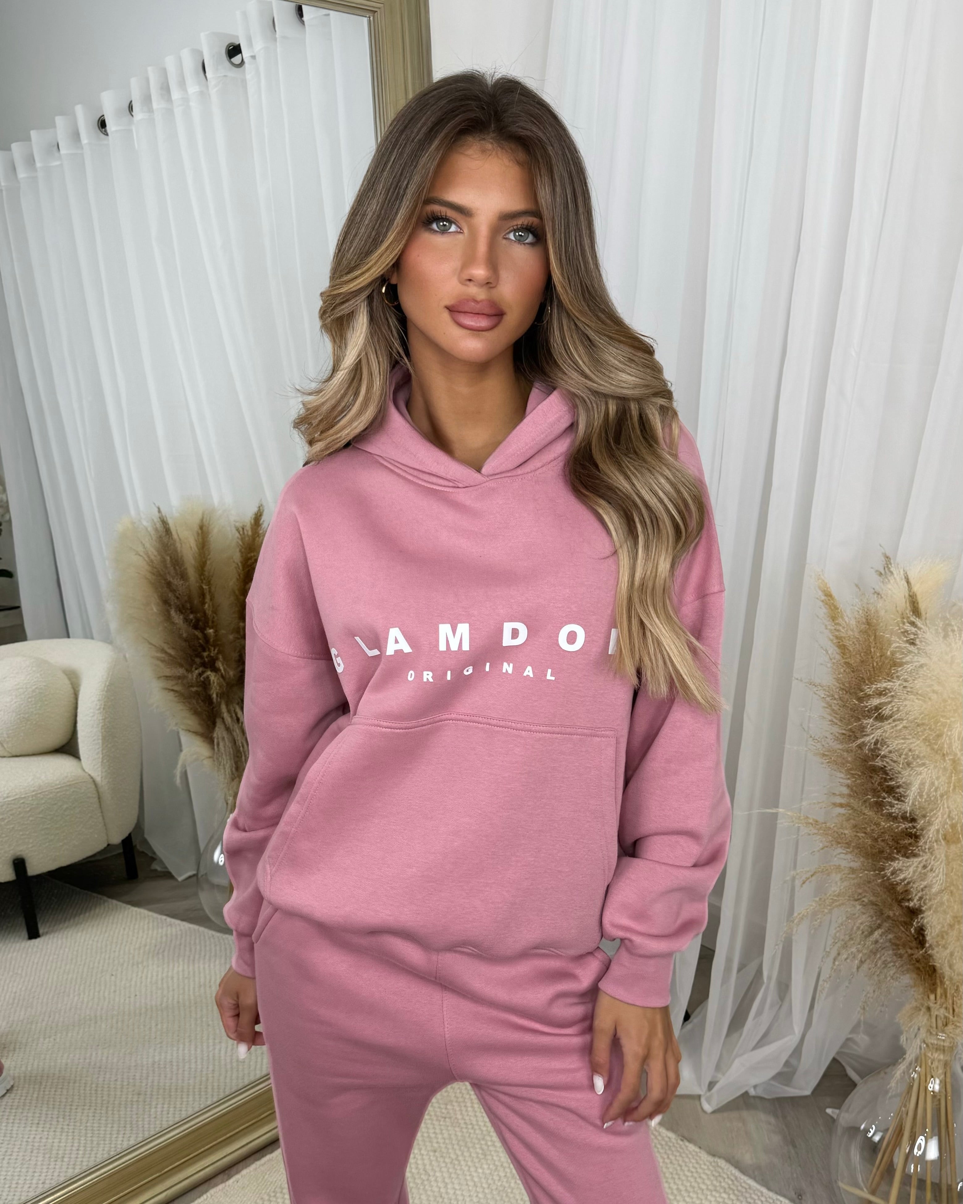 Skylar 'GLAMDOLL' High Density Front Detail Fleece Lined Hoodie - Blush Pink