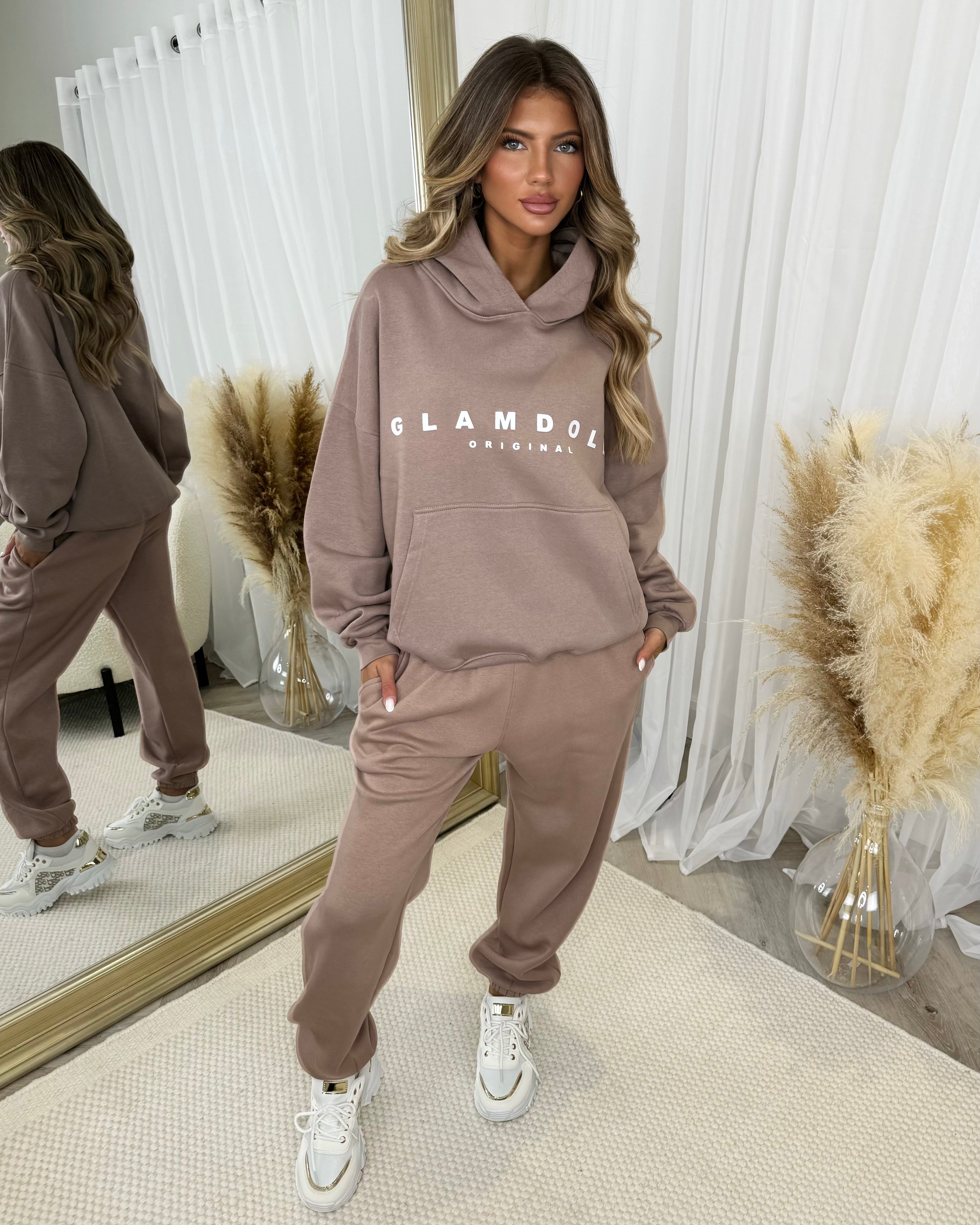 Skylar 'GLAMDOLL' High Density Front Detail Fleece Lined Hoodie - Mocha