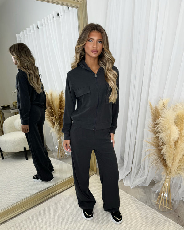 Imogen Zip Front Pocket Detail Straight Leg Trouser Set - Charcoal Grey