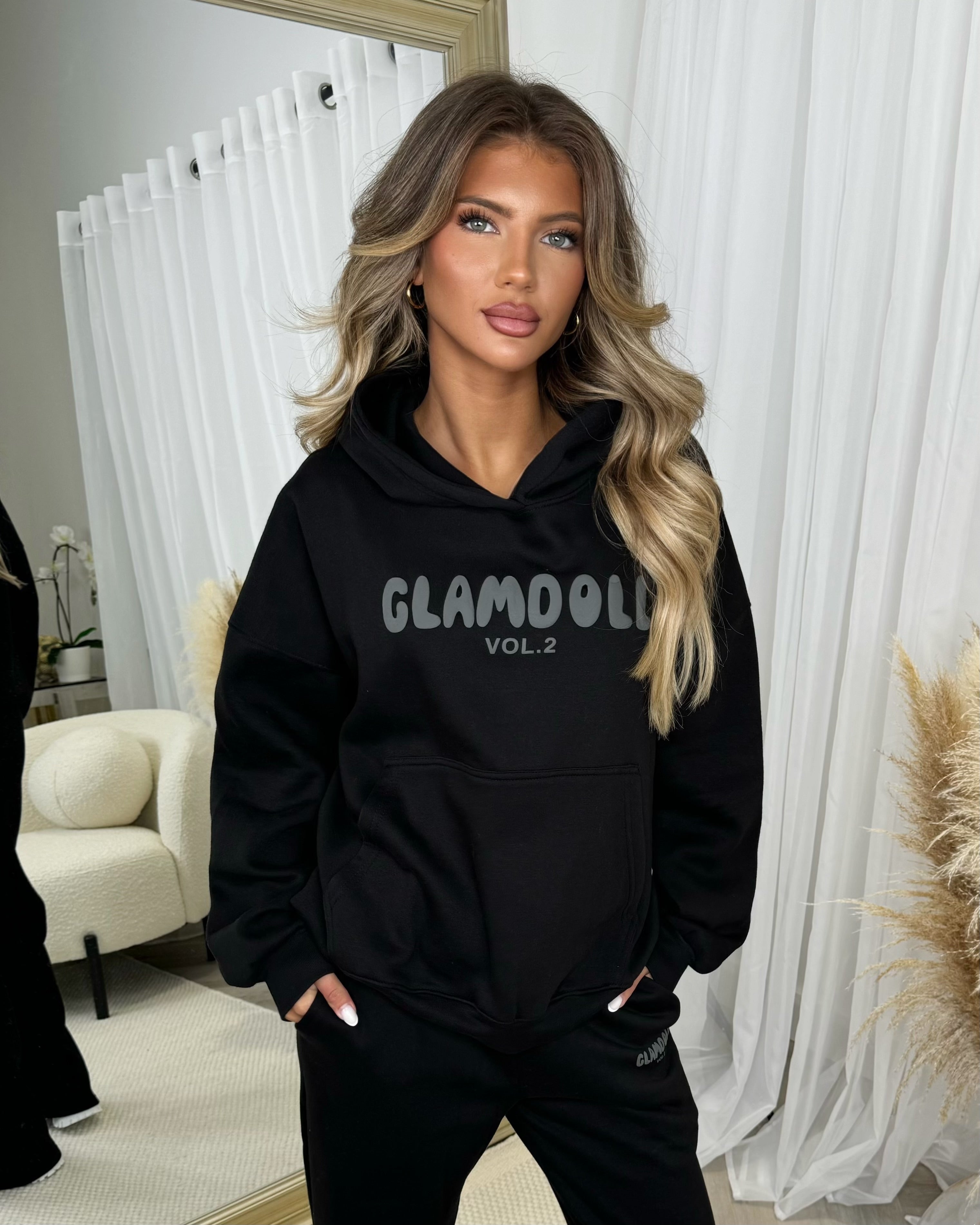Zoey 'GLAMDOLL' BUBBLE PRINT Design Hoodie & Flared Jogger Set - Black