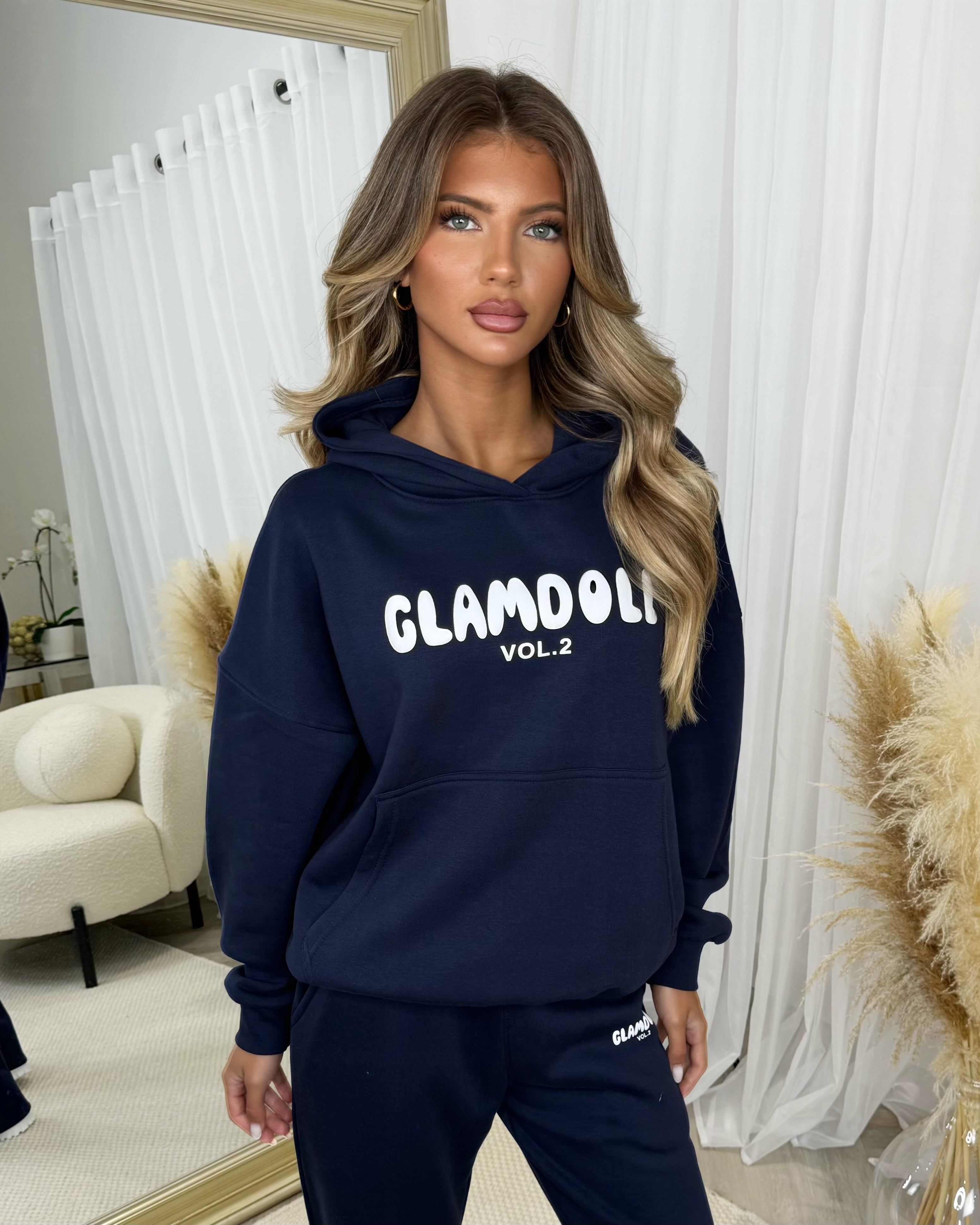 Zoey 'GLAMDOLL' BUBBLE PRINT Design Hoodie & Flared Jogger Set - Navy